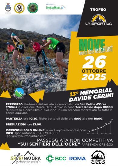 Si svolgerà DOMENICA 26 Ottobre a San Felice d’Ocre (AQ), la tredicesima edizione del MOVE, Monte Ocre Vertical Event, 13° Memorial Davide Cerini.